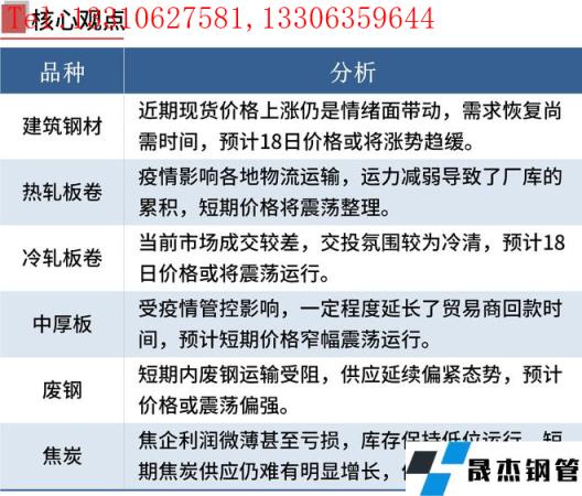 建筑厚壁無縫鋼管:3月17日,全國31個主要城市20mm三級抗震螺紋鋼均價4940元/噸,較上個交易日上漲32元/噸。本周受山西無縫厚壁鋼管廠家復(fù)產(chǎn)影響,產(chǎn)量繼續(xù)小幅回升,社會庫存繼續(xù)下降,但廠庫受疫情影響有所增加,本周表觀消費(fèi)出現(xiàn)回落。短期來看,近期現(xiàn)貨價格上漲仍是情緒面帶動,需求恢復(fù)尚需時間,短期還需要關(guān)注疫情對于需求復(fù)蘇影響。綜合來看,預(yù)計(jì)18日國內(nèi)建筑厚壁無縫鋼管價格或?qū)q勢趨緩為主。