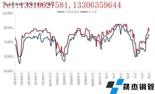 本周西北區(qū)域15家建筑厚壁無縫鋼管生產廠家48條產線實際開工41條,軋線開工率為85.4%,周環(huán)比下降4%;建材產線實際產量約66萬噸,周環(huán)比減少約0.5萬噸,產能利用率為79.8%,周環(huán)比下降0.3%,減量部分主要在陜西LG無縫厚壁鋼管廠家高爐停產兩條軋線同步檢修。