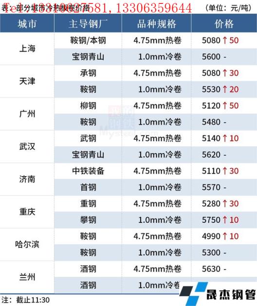 ◎天津:18日早盤冷軋市場價格漲20,1.0天鐵5540首鋼5570唐鋼5530包鋼5540,成交一般。(單位:元/噸)