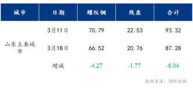 本周山東市場建筑厚壁無縫鋼管社會庫存繼續(xù)回落,為庫存拐點出現(xiàn)以來的第4周降庫。根據(jù)調(diào)研,本周庫存總量87.28萬噸,較上周下降6.04萬噸,降幅6.47%,周環(huán)比降幅加快。具體情況如下:本周山東13個主要城市螺紋鋼66.52萬噸,較上周下降4.27萬噸;盤螺20.76萬噸,較上周下降1.77萬噸。