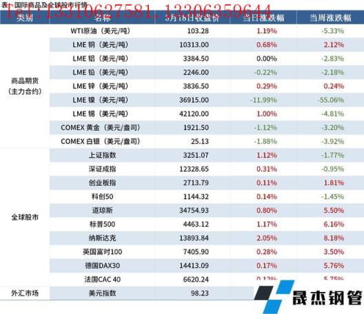 金融市場(chǎng):倫鎳開(kāi)盤后連續(xù)3日跌停,周度大跌55.06%;全球股市中,中國(guó)股市下跌,歐美股市上漲;美元指數(shù)收于98.23,下跌0.91%。