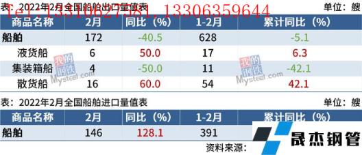 2月船舶進口146艘,同比增長128.1%;1-2月累計進口391艘,同比增長97.5%。