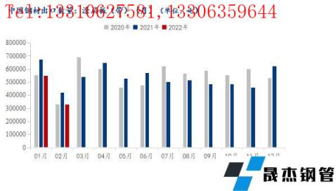 海關(guān)總署數(shù)據(jù)顯示:2022年2月我國涂層板(帶)出口總量共計(jì)33.26萬噸,月環(huán)比降幅39.36%,年同比下降21.15%。2022年1-2月我國涂層板(帶)出口總量共計(jì)88.0991萬噸,年同比下降19.51%。