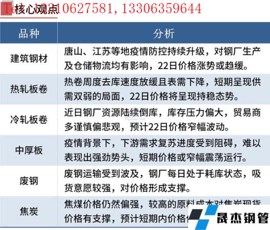 國內(nèi)多省市升級調(diào)整疫情防控,下游工地施工進度放緩,導致鋼市成交量下滑。無縫厚壁鋼管廠家生產(chǎn)影響相對較小,但若唐山交通管制持續(xù),不排除高爐廠也會減產(chǎn)或停產(chǎn)。短期內(nèi),鋼市供需基本面偏弱,成本支撐力度較強。在重大利好政策出臺以及全國疫情得到有效控制之前,鋼價或繼續(xù)震蕩運行。
