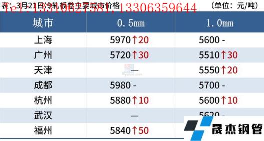 熱軋板卷:3月21日,全國24個主要城市4.75mm熱軋板卷均價5190元/噸,較上個交易日上漲23元/噸。國內(nèi)多地區(qū)疫情爆發(fā),導致下游需求下降,部分地區(qū)物流受阻,熱卷周度去庫速度放緩且表需下降,對鋼價帶來壓力。但從供應上來看,疫情導致熱卷供應有所放緩,故短期呈現(xiàn)供需雙弱的局面。目前已進入傳統(tǒng)需求季,疫情回升或帶來負面影響。預計22日全國熱軋板卷將呈現(xiàn)持穩(wěn)態(tài)勢。