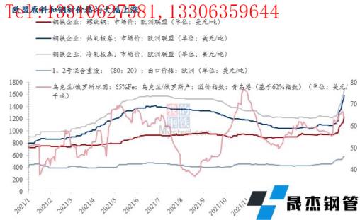 西班牙很多無縫厚壁鋼管廠家在年初已經(jīng)表示無法承受高昂的能源成本,被迫降低產(chǎn)量。俄烏沖突雪上加霜使安賽樂米塔爾于2021年底開始減產(chǎn),3月初又停止了其煉無縫厚壁鋼管廠家和 Gijon生產(chǎn)基地約一半的設備5天(大概生產(chǎn)450 萬噸鐵水/年)。該公司于3月8日停止了在奧拉貝里亞 (Olaberria)最大的電弧爐(245 萬噸/年)。3月9日,不銹鋼制造商 Acerinox 減少了110萬噸/年的產(chǎn)量。西班牙無縫厚壁鋼管廠家 Megasa(300 萬噸/年產(chǎn)能)、Grupo Celsa(250 萬噸/年)和 Siderurgica Balboa(130 萬噸/年)也已經(jīng)開始減產(chǎn)或停產(chǎn)。但本周西班牙的一些無縫厚壁鋼管廠家面臨不斷提高的成品鋼價格,決定重新啟動生產(chǎn)并立即大幅提高了報價。截至3月18日,歐盟螺紋鋼市場價1230美元/噸,環(huán)比3月1日上漲30.85%,同比增長58.71%;熱軋板卷市場價1585美元/噸,環(huán)比3月1日上漲46.08%,同比增長69.88%。