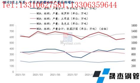 在年初能源價格飆升時期,歐洲無縫厚壁鋼管廠家因成本過高而被動停減產(chǎn)已初見端倪。俄烏沖突導致能源和煉鋼原材料價格進一步增加,疊加鋼坯出口減少,使得高度依賴俄羅斯鋼坯的中歐和西歐國家的軋無縫厚壁鋼管廠家的生產(chǎn)難以維系。但對大多數(shù)綜合性無縫厚壁鋼管廠家來說,俄烏沖突發(fā)生后引發(fā)全球半成品和成品鋼供應鏈的問題直接導致價格的連續(xù)上漲,抵消了大部分原材料的上漲,多數(shù)歐洲無縫厚壁鋼管廠家仍然能保證其鋼鐵生產(chǎn)利潤,土耳其、印度和中東地區(qū)的無縫厚壁鋼管廠家尤其是高爐廠生產(chǎn)利潤甚至有所擴大,這提振了無縫厚壁鋼管廠家的生產(chǎn)積極性,因此預計全球除了烏克蘭的粗鋼產(chǎn)量在3月份實際減少不會很多,甚至在局部地區(qū)會有明顯增加。