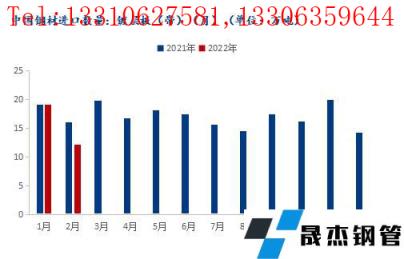 2022年2月我國(guó)鍍鋅板(帶)進(jìn)口總量共計(jì)12.21萬噸,年同比下降24.1%;2022年1-2月份我國(guó)鍍鋅板(帶)進(jìn)口總量共計(jì)31.32萬噸,年同比下降11.0%。