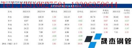 庫存方面:據(jù)mysteel調(diào)研的29城庫存數(shù)據(jù)顯示,庫存數(shù)據(jù)在歷經(jīng)幾周累庫后再次迎來庫存拐點(diǎn)。全國庫存雖出現(xiàn)了較大幅度的降庫,其中西南地區(qū)庫存是處于連續(xù)降庫最為明顯的。其主要原因是:自春節(jié)后,西南地區(qū)本地?zé)o縫厚壁鋼管廠家高爐出鐵水不暢,產(chǎn)能利用率不足70%,投放市場的體量明顯減少,庫存月環(huán)比數(shù)據(jù)下降顯著。而對比華東、華南這些區(qū)域來看,受疫情防控升級影響,市場需求一定程度上受到抑制,本周庫存雖出現(xiàn)降庫,但從年同比數(shù)據(jù)來看,均是遠(yuǎn)高于同期的態(tài)勢。通過表1、表2的庫存數(shù)據(jù)對比之下,能夠明顯看得出,西南地區(qū)的庫存壓力是遠(yuǎn)小于其他區(qū)域的。