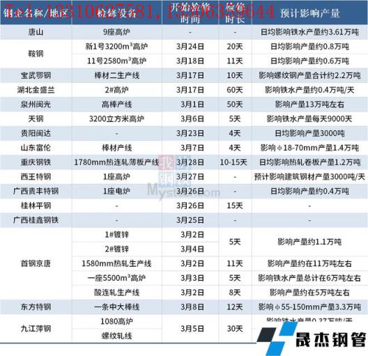 免責(zé)聲明:本網(wǎng)站(山東聊城晟杰無縫鋼管廠www.androidrecoverysoftware.com)刊載的“3月各地?zé)o縫鋼管廠家停產(chǎn)檢修匯總(附產(chǎn)量影響)”等均源于網(wǎng)絡(luò),版權(quán)歸原作者所有,且僅代表原作者觀點(diǎn),本文所載信息僅供參考。轉(zhuǎn)載僅為學(xué)習(xí)與交流之目的,如無意中侵犯您的合法權(quán)益,請(qǐng)及時(shí)聯(lián)系刪除。本網(wǎng)站刊登此篇文章并不意味著本站贊同其觀點(diǎn)或證實(shí)其內(nèi)容的真實(shí)性,我們不對(duì)其科學(xué)性、嚴(yán)肅性等作任何形式的保證。如果侵犯了您的版權(quán),請(qǐng)盡快聯(lián)系我們予以撤銷,謝謝合作!