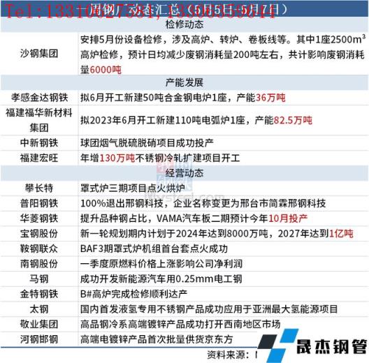 據(jù)不完全統(tǒng)計,本周(5月5日-5月7日)有1家無縫厚壁鋼管廠家發(fā)布檢修計劃,具體如下: