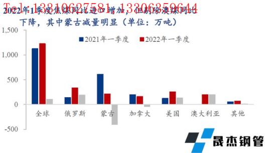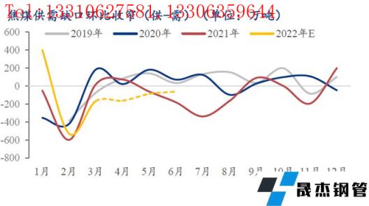 在地緣政治沖突等因素的影響下,國(guó)際焦煤供需格局偏緊,全球煤價(jià)整體走強(qiáng),制約我國(guó)焦煤進(jìn)口。2022年1月下旬至4月下旬,不斷沖擊年內(nèi)新高的鐵水疊加進(jìn)口減量,焦煤四部門(港口+煤礦+焦企+無(wú)縫厚壁鋼管廠家)庫(kù)存連續(xù)12周降庫(kù)。剔除澳煤通關(guān)量,焦煤進(jìn)口一季度同比下滑約百萬(wàn)噸。而近期不斷傳出有進(jìn)口增量消息的蒙煤則備受市場(chǎng)期待,我們認(rèn)為在今年粗鋼產(chǎn)量限產(chǎn)的背景下,鐵水產(chǎn)量有望逐步見(jiàn)頂,焦煤即將擺脫需求最好供應(yīng)最差的時(shí)期。由此,在焦煤利潤(rùn)高位,厚壁無(wú)縫鋼管利潤(rùn)受制及供需缺口環(huán)比減少的情況下,焦煤價(jià)格存在階段性高位回調(diào)風(fēng)險(xiǎn)。