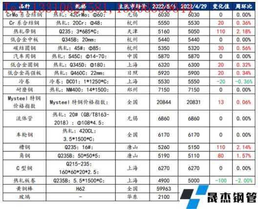 核心觀點(diǎn):上周厚壁無(wú)縫鋼管市場(chǎng)整體小幅上漲,五一假期前后,市場(chǎng)存在小幅度的需求放量,疊加節(jié)前現(xiàn)貨成本普遍偏高,因此現(xiàn)貨價(jià)格多數(shù)在節(jié)后小幅上漲;另一方面,市場(chǎng)對(duì)于疫情緩解后的需求釋放情況保持樂(lè)觀,因此從預(yù)期方面而言也多以看漲較多;在有色方面,整體下游行業(yè)消費(fèi)不及預(yù)期,銅、鋁上周價(jià)格有所下滑,市場(chǎng)整體呈現(xiàn)較為弱勢(shì)。