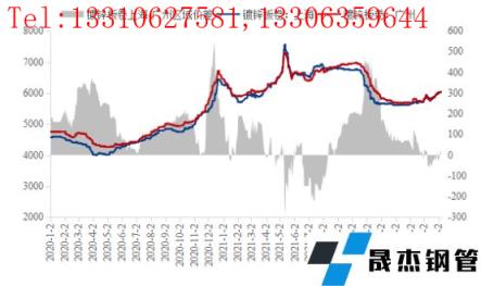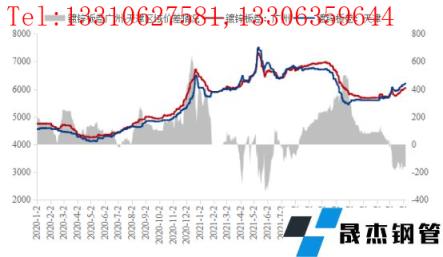 華東和華南作為鍍鋅板卷三大主流區(qū)域中的兩個(gè),其分工職責(zé)略有不同,華東地區(qū)以上海為例,其更多是作為無(wú)縫厚壁鋼管廠家投放資源的聚集地。隨著周邊江蘇、浙江等下游產(chǎn)業(yè)越來(lái)越集中,上海地區(qū)資源真正消化也是依托周邊市場(chǎng)。而華南市場(chǎng)一直以來(lái)作為消費(fèi)市場(chǎng),基本屬于是資源流入型區(qū)域,尤其是華東、華北地區(qū)資源,依托水運(yùn)將大部分資源發(fā)往華南。無(wú)論是從地理位置還是資源消費(fèi),華南地區(qū)價(jià)格本應(yīng)該處于三大主流區(qū)域中價(jià)格最高的水平,但是從圖1可以明顯看出,2021年6月中下旬到8月上旬,差不多維持了一個(gè)半月的倒掛,華南地區(qū)鍍鋅板卷價(jià)格較華東地區(qū)倒掛幅度達(dá)到200元/噸左右。筆者分析來(lái)看,2021年6月份市場(chǎng)仍處于上漲過(guò)程中,隨著價(jià)格的不斷上漲,華東與華南地區(qū)的價(jià)格逐漸拉開(kāi)差距,華南地區(qū)的上漲速度明顯不及華東。在下跌過(guò)程中,華南地區(qū)價(jià)格表現(xiàn)更為堅(jiān)挺,逐漸與華東地區(qū)拉開(kāi)差距,到11月份兩者間差距擴(kuò)大至全年最高450元/噸,而后華南價(jià)格高于華東地區(qū)逐漸恢復(fù)正常水平。