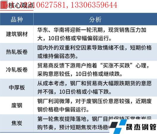 建筑厚壁無縫鋼管:5月9日,全國31個(gè)主要城市20mm三級抗震螺紋鋼均價(jià)5022元/噸,較上個(gè)交易日下跌50元/噸。短期來看,近期市場心態(tài)偏悲觀,同時(shí)華東、華南即將迎來新一輪汛期,現(xiàn)貨銷售壓力加大。因此在缺乏有效強(qiáng)需求支撐下,預(yù)計(jì)10日建筑厚壁無縫鋼管價(jià)格或?qū)⒄踹\(yùn)行。