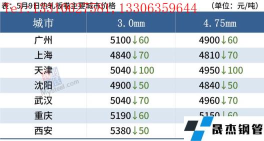 熱軋板卷:5月9日,全國24個(gè)主要城市4.75mm熱軋板卷均價(jià)5067元/噸,較上個(gè)交易日下跌60元/噸。綜合來看,美聯(lián)儲加息和縮表落地限制了國內(nèi)貨幣寬松的空間,國內(nèi)多地區(qū)疫情爆發(fā),國內(nèi)外的雙重因素導(dǎo)致情緒不佳,無縫厚壁鋼管廠家目前面臨虧損的局面,焦煤焦炭的首輪提降已經(jīng)落地,原料端價(jià)格支撐進(jìn)行弱化,原料與成材呈現(xiàn)負(fù)反饋。預(yù)計(jì)下半年經(jīng)濟(jì)沖擊影響依舊,短期成材或?qū)⒕S持偏弱態(tài)勢。因此,預(yù)計(jì)全國熱軋板卷10日價(jià)格維持下行趨勢。
