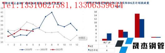 5月無縫厚壁鋼管廠家對京津冀區(qū)域投放量環(huán)比增加32.16萬噸,同比減少13.71萬噸。雖然無縫厚壁鋼管廠家生產(chǎn)成本高位,但產(chǎn)線復(fù)產(chǎn)的情況增加,具體來看:1、河鋼承鋼兩螺一線在產(chǎn),對京津冀投放量4月份22.5萬噸,5月份計劃22.5萬噸;2、河鋼樂鋼兩條螺紋產(chǎn)線在產(chǎn),4月唐山封城,資源主要對唐山本地投放,4月份合計13萬噸,5月份計劃投放13萬噸;3、敬業(yè)無縫厚壁鋼管廠家6條螺紋產(chǎn)線在產(chǎn),加上烏鋼資源流入,4月對京津冀投放量約43萬噸,5月計劃57.8萬噸;4、東華無縫厚壁鋼管廠家螺紋產(chǎn)線復(fù)產(chǎn),5月計劃投放10.19萬噸;5、鑫達一條螺紋產(chǎn)線不飽和生產(chǎn),4月京津冀僅投放6.5萬,5月份計劃投放10萬噸;6、4月建龍系無縫厚壁鋼管廠家對京津市場投放13.4萬噸左右,5月份計劃16萬噸左右,其中新?lián)徜撟疃唷?/p>