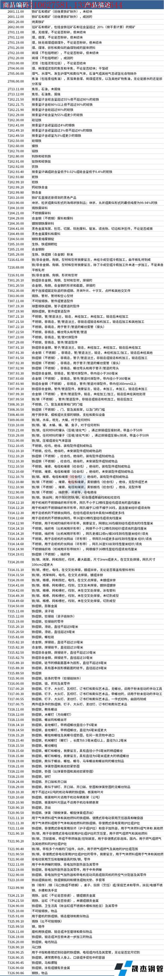 據(jù)不完全整理,美國(guó)征收中國(guó)產(chǎn)品關(guān)稅的清單,涉及鋼鐵類(lèi)產(chǎn)品如下: