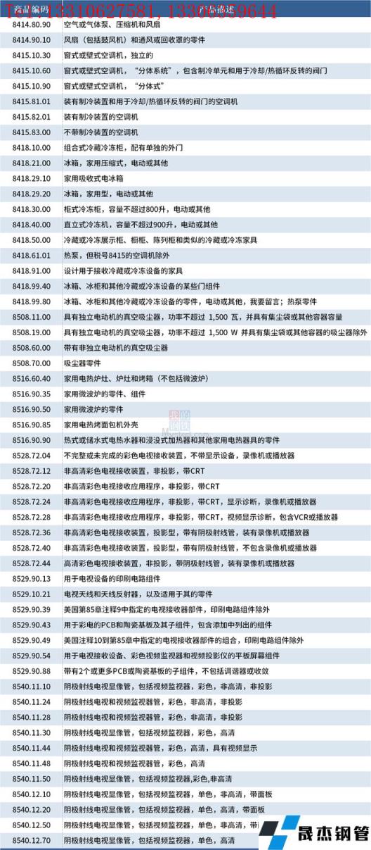 據(jù)不完全整理,美國征收中國產(chǎn)品關(guān)稅的清單,涉及家電類產(chǎn)品如下: