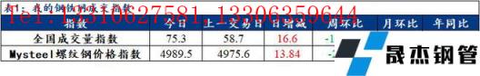 訊:全國(guó)建筑厚壁無(wú)縫鋼管成交量監(jiān)測(cè),成交量相對(duì)指數(shù)來(lái)看,全國(guó)75.3增16.6,北方69.7增23.4,華東98增18.6,南方55.7增11。今日螺紋鋼價(jià)格指數(shù)4989.5,較上一交易日增13.84。