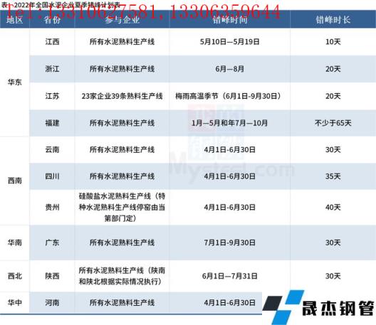 其中,貴州省水泥工業(yè)協(xié)會在延長2022年二季度錯(cuò)峰生產(chǎn)停窯的通知中表示,由于原燃材料價(jià)格大幅上漲、下游需求持續(xù)低迷、企業(yè)庫存持續(xù)高位,二季度每條生產(chǎn)線在錯(cuò)峰生產(chǎn)停窯40天基礎(chǔ)上再增加5天錯(cuò)峰生產(chǎn)停窯時(shí)間。全國水泥企業(yè)夏季錯(cuò)峰計(jì)劃具體情況如下: