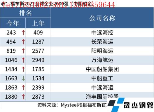 免責聲明:本網站(山東聊城晟杰無縫鋼管廠www.androidrecoverysoftware.com)刊載的“:中國8家船企上榜福布斯2022全球企業(yè)2000強”等均源于網絡,版權歸原作者所有,且僅代表原作者觀點,本文所載信息僅供參考。轉載僅為學習與交流之目的,如無意中侵犯您的合法權益,請及時聯(lián)系刪除。本網站刊登此篇文章并不意味著本站贊同其觀點或證實其內容的真實性,我們不對其科學性、嚴肅性等作任何形式的保證。如果侵犯了您的版權,請盡快聯(lián)系我們予以撤銷,謝謝合作!