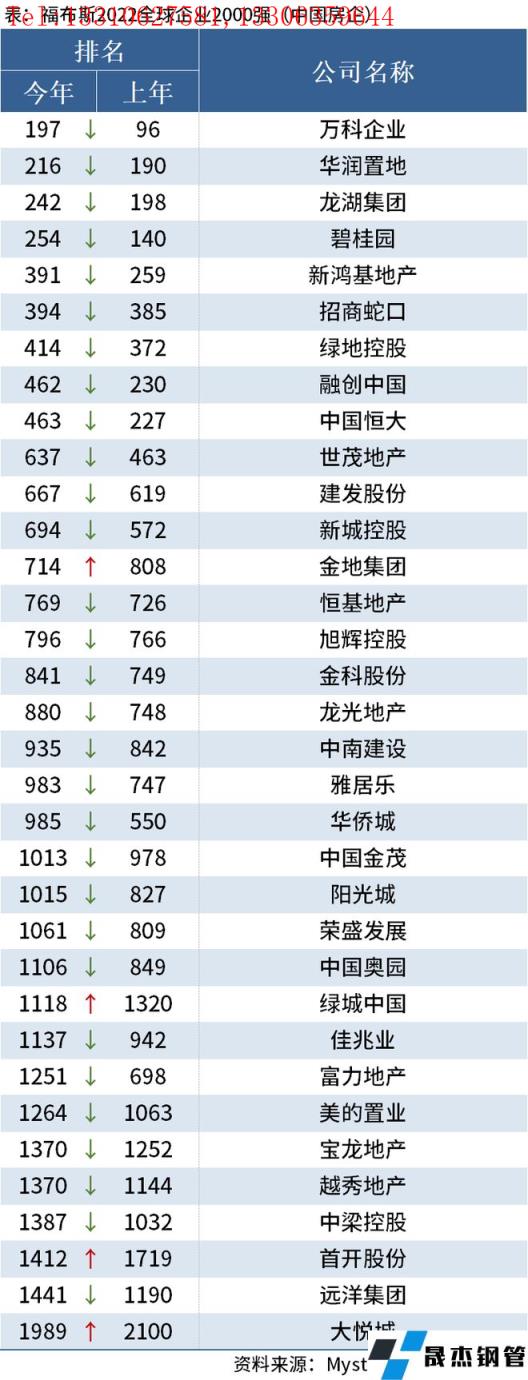 5月12日,福布斯2022全球企業(yè)2000強發(fā)布。據(jù)統(tǒng)計,共有34家中國房地產(chǎn)企業(yè)上榜,其中金地集團、綠城中國、首開股份與大悅城四家房企排名有所上升,剩余30家上榜房企排名均出現(xiàn)下降。
