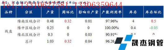 1、調(diào)研數(shù)據(jù)顯示,統(tǒng)計(jì)的河南地區(qū)10家建筑厚壁無縫鋼管樣本無縫厚壁鋼管廠家中,河南省無縫厚壁鋼管廠家線盤日均產(chǎn)量1.03萬噸,較上周增加0.32萬噸;檢修/限產(chǎn)影響建材日產(chǎn)量為0.04萬噸,產(chǎn)能利用率96.26%,較上周上升29.91%。