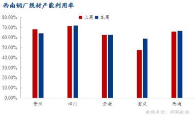 貴州區(qū)域:個(gè)別無縫厚壁鋼管廠家停產(chǎn)檢修尚未恢復(fù)生產(chǎn),線材產(chǎn)能利用率64.24%,環(huán)比下降4.28%;開工率75%,環(huán)比持平;周產(chǎn)量3萬噸,環(huán)比減少0.2萬噸。