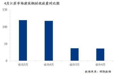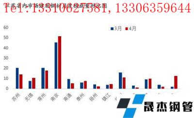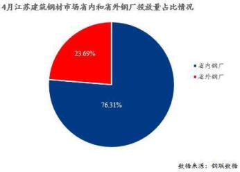 由上圖可見,4月江蘇省內(nèi)無縫厚壁鋼管廠家在江蘇省13個城市投放建筑厚壁無縫鋼管量占總投放量的76.31%,省外無縫厚壁鋼管廠家占江蘇省總投放量的23.69%。同時,從調(diào)研數(shù)據(jù)來看,4月江蘇市場建筑厚壁無縫鋼管實際投放總量較3月減少4.36萬噸萬噸,降幅約2.76%。