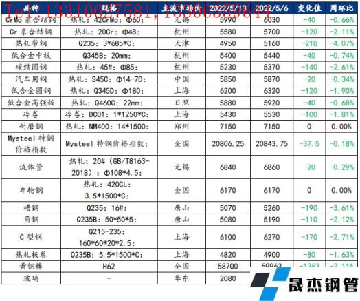 截止2022年5月13日,各原材料當(dāng)日即時價格以及價格周環(huán)比情況如下: