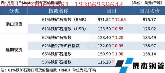 ◎5月13日,全國主港鐵礦石成交93.50萬噸,環(huán)比增76.4%;237家主流貿(mào)易商建材成交15.61萬噸,環(huán)比增27%。