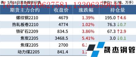 焦炭:5月16日,焦炭市場(chǎng)偏弱運(yùn)行,焦炭市場(chǎng)二輪降價(jià)落地,累計(jì)降幅為400元/噸。產(chǎn)地焦企開工正常,生產(chǎn)良好,當(dāng)前焦企仍有盈利即產(chǎn)即銷,出貨順暢。無縫厚壁鋼管廠家方面,無縫厚壁鋼管廠家焦炭庫存呈現(xiàn)增勢(shì),現(xiàn)大多控制到貨節(jié)奏,按需采購焦炭,考慮到無縫厚壁鋼管廠家成品出貨壓力較大且原料成本依然偏高,繼續(xù)打壓焦價(jià)意愿強(qiáng)烈。原料煤價(jià)格繼續(xù)回落,成本支撐較弱,預(yù)計(jì)短期內(nèi)焦炭市場(chǎng)偏弱運(yùn)行。