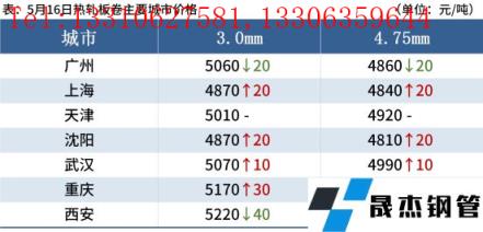 熱軋板卷:5月16日,全國24個(gè)主要城市4.75mm熱軋板卷均價(jià)5013元/噸,較上個(gè)交易日下跌8元/噸。受期貨盤面的影響午后價(jià)格小幅上揚(yáng),但成交普遍一般,看弱情緒仍在部分蔓延,商家多數(shù)仍謹(jǐn)慎操作,預(yù)計(jì)17日全國熱軋板卷價(jià)格將呈現(xiàn)小幅上漲的態(tài)勢(shì)。