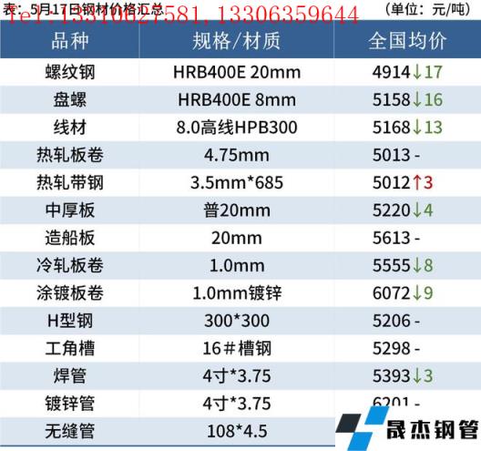 建筑厚壁無縫鋼管:5月17日,全國31個主要城市20mm三級抗震螺紋鋼均價4914元/噸,較上個交易日下跌17元/噸。從成交方面來看,早盤成交清淡,不溫不火,午后隨著期貨走弱,現(xiàn)貨跟跌,全天成交偏弱。短期來看,受疫情以及天氣影響,當(dāng)前需求仍處于較弱水平,總體成交清淡,預(yù)計18日國內(nèi)建筑厚壁無縫鋼管價格延續(xù)弱勢運行態(tài)勢。