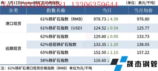 ◎5月17日,全國主港鐵礦石成交96.50萬噸,環(huán)比增40.9%;237家主流貿易商建材成交14.30萬噸,環(huán)比減17.5%。