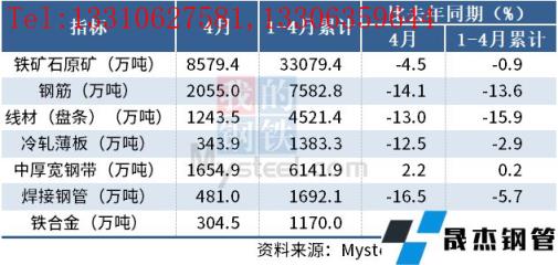 4月份,中國鐵礦石原礦產(chǎn)量為8579.4萬噸,同比下降4.5%;1-4月累計產(chǎn)量為33079.4萬噸,同比下降0.9%。