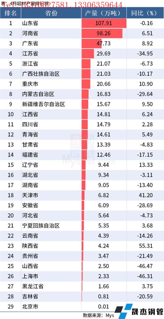 國家統(tǒng)計(jì)局?jǐn)?shù)據(jù)顯示,2022年4月全國鋁材產(chǎn)量520.0萬噸,1-4月鋁材產(chǎn)量1923.2萬噸。其中,4月山東鋁材產(chǎn)量同比下降0.16%,河南和廣東鋁材產(chǎn)量分別同比增長6.51%和8.92%。