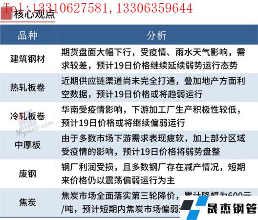 建筑厚壁無縫鋼管:5月18日,全國31個主要城市20mm三級抗震螺紋鋼均價4874元/噸,較上個交易日跌40元/噸。早盤期螺弱勢不改,國內建筑厚壁無縫鋼管價格整體繼續(xù)下跌。短期來看,期貨盤面大幅下行,鋼坯價格再次回落,市場情緒整體偏弱,加之近期受疫情、雨水天氣影響需求較差,預計19日國內建筑厚壁無縫鋼管價格繼續(xù)延續(xù)弱勢運行態(tài)勢。