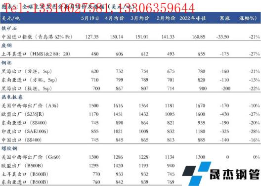 截至5月19日,中國鐵礦石進口從4月初峰值累計下跌21%,土耳其廢鋼累計跌幅達到27%。從各品種區(qū)域價格走勢來看,熱卷綜合跌幅達到20%,而螺紋鋼跌幅在8%左右,歐洲熱卷價格累計跌幅為27%,相比之下美國跌幅最小,約10%。(圖表5)