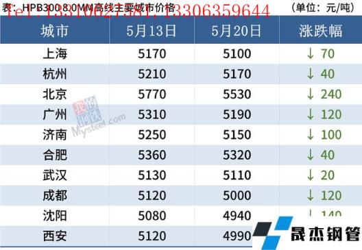 據(jù)監(jiān)測,截至5月20日,全國主要城市20mm三級抗震螺紋鋼均價4849元/噸,較5月13日下跌107元/噸;8.0mmHPB300高線均價5101/噸,較5月7日下跌104元/噸。
