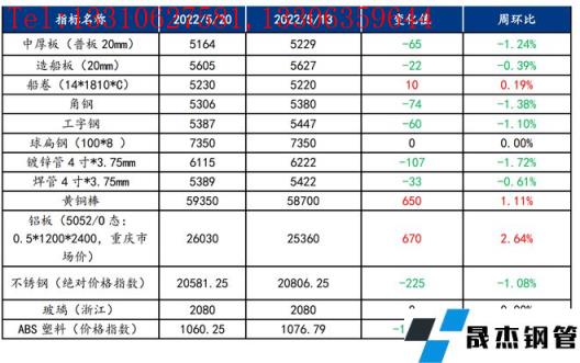 截止2022年5月20日,各原材料當(dāng)日即時(shí)價(jià)格以及價(jià)格周環(huán)比情況如下: