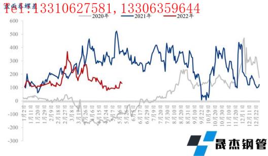 我們知道,2210合約螺紋鋼由之前的過(guò)磅交割改為理計(jì)交割,而10合約熱卷交割仍為過(guò)磅。這樣當(dāng)前盤面卷螺差折算成螺紋過(guò)磅的話,實(shí)際已經(jīng)是負(fù)值。為何盤面卷螺差會(huì)持續(xù)低位。最主要的原因是疫情對(duì)板材需求的影響大于建筑厚壁無(wú)縫鋼管,家電、汽車等制造業(yè)和物流修復(fù)都需要一個(gè)相對(duì)長(zhǎng)的時(shí)間,而對(duì)比建筑業(yè)產(chǎn)銷,從上游無(wú)縫厚壁鋼管廠家到下游工地可以最快的垂直到達(dá),快速實(shí)現(xiàn)。在經(jīng)濟(jì)下行周期,制造業(yè)表現(xiàn)低迷,為穩(wěn)增長(zhǎng)建筑業(yè)表現(xiàn)會(huì)相對(duì)好些,此時(shí)螺紋相對(duì)熱卷稍強(qiáng),盤面卷螺差持續(xù)縮小。