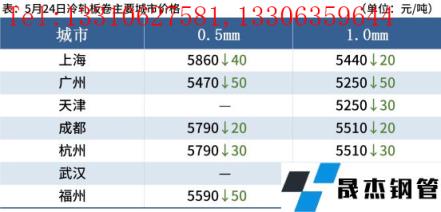 冷軋板卷:5月24日,全國24個主要城市1.0mm冷卷均價5460元/噸,較上個交易日下跌20元/噸。隨著昨日黑色系期貨夜盤震蕩下行,今日現(xiàn)貨市場價格小幅下跌,部分市場報價混亂;據(jù)悉,當(dāng)前上海倉庫基本上都可以加工和提貨,臨近訂貨時期,商家出貨回籠資金意愿較強。綜合來看,預(yù)計25日國內(nèi)冷軋板卷現(xiàn)貨價格或?qū)⑵踹\行。
