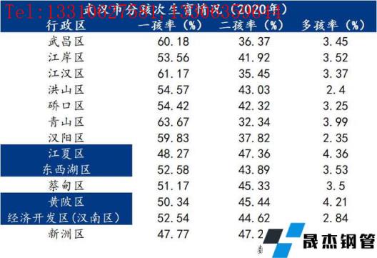 再結(jié)合武漢市分孩次生育情況來看,取消限購政策的四個遠(yuǎn)城區(qū)的二孩率和三孩率中,江夏區(qū)的多孩生育率表現(xiàn)最為突出,其次市黃陂區(qū),第三為東西湖區(qū),最弱是經(jīng)濟開發(fā)區(qū)(漢南區(qū))的數(shù)據(jù)。對比于其他多孩率也相對較高的主城區(qū)來說,人口過度集中產(chǎn)生對生活配套服務(wù)和設(shè)施的再完善形成一定壓力,因此對于在面對待發(fā)展的行政區(qū)以及具備經(jīng)濟能力的人群適度提前規(guī)劃,形成具備因區(qū)施策的主觀優(yōu)勢。
