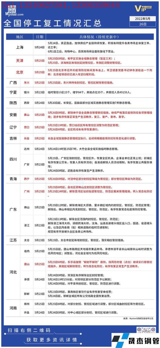 免責(zé)聲明:本網(wǎng)站(山東聊城晟杰無縫鋼管廠www.androidrecoverysoftware.com)刊載的“疫情影響丨全國停工復(fù)工情況匯總(5月26日)”等均源于網(wǎng)絡(luò),版權(quán)歸原作者所有,且僅代表原作者觀點(diǎn),本文所載信息僅供參考。轉(zhuǎn)載僅為學(xué)習(xí)與交流之目的,如無意中侵犯您的合法權(quán)益,請及時(shí)聯(lián)系刪除。本網(wǎng)站刊登此篇文章并不意味著本站贊同其觀點(diǎn)或證實(shí)其內(nèi)容的真實(shí)性,我們不對(duì)其科學(xué)性、嚴(yán)肅性等作任何形式的保證。如果侵犯了您的版權(quán),請盡快聯(lián)系我們予以撤銷,謝謝合作!