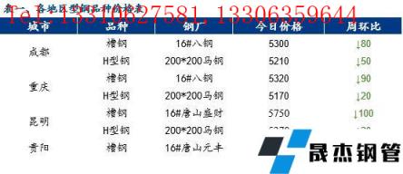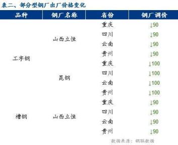 表1:本周西南區(qū)域型鋼價(jià)格變化匯總(單位:元/數(shù)據(jù)來源:)