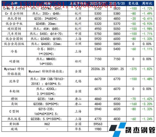截止2022年5月27日,各原材料當(dāng)日即時價格以及價格周環(huán)比情況如下: