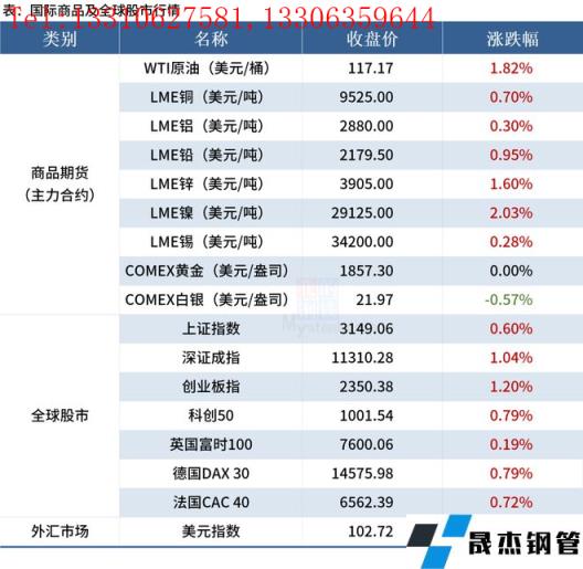 ◎首席汪建華:展望6月鋼鐵市場,雖然市場仍有下行壓力,但還是有望出現(xiàn)修復(fù)性反彈。在經(jīng)歷充分調(diào)整后,隨著疫情管控逐步好轉(zhuǎn),各項政策的落地和逐步發(fā)力,厚壁無縫鋼管需求有望逆季節(jié)回升,處于近1年來低位的鋼價,將迎來修復(fù)性反彈,并拉開下半年鋼價反彈的序幕。詳情>>
