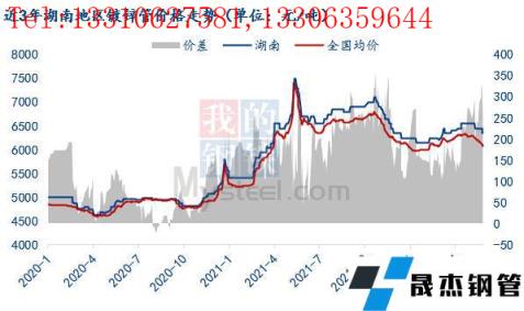 2021年湖南地區(qū)鍍鋅管價格最高點在5月14日報7490元/噸,創(chuàng)下歷史新高,最低點為1月4日地區(qū)報5400元/噸,高低跨度達(dá)2090元/噸。今年價格的主導(dǎo)因素主要來自宏觀政策,一季度緊供給預(yù)期促使鍍鋅管價格大幅上漲,二季度強預(yù)期弱現(xiàn)實的博弈下,市場價格震蕩走弱,5月湖南鍍鋅管價格出現(xiàn)200元的跌幅,僅比年初上漲100元/噸。另外,湖南地區(qū)已比全國均價高出近300元/噸,處于今年來高位,這側(cè)面說明當(dāng)前長沙區(qū)域鍍鋅管利潤情況尚可。